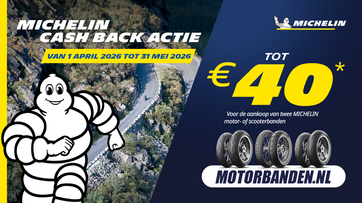 Koop bij Sabra Motorbandenservice tussen 1 april en 31 mei 2026, één (1) of twee (2) MICHELIN motorbanden uit de onderstaande gamma’s en ontvang een terugbetaling in de vorm van een overschrijving van € 15 voor de aankoop van één (1) motorband en € 40 voor de aankoop van twee (2) motorbanden. Om van dit aanbod te kunnen profiteren, moeten de MICHELIN-motorbanden op dezelfde dag zijn gekocht en op dezelfde factuur staan.
